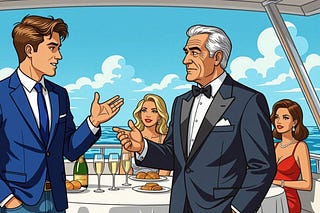 I’m on a triple-decker yacht in the South of France, dressed to fit in while servers offer champagne and caviar. No one knows I'm broke!